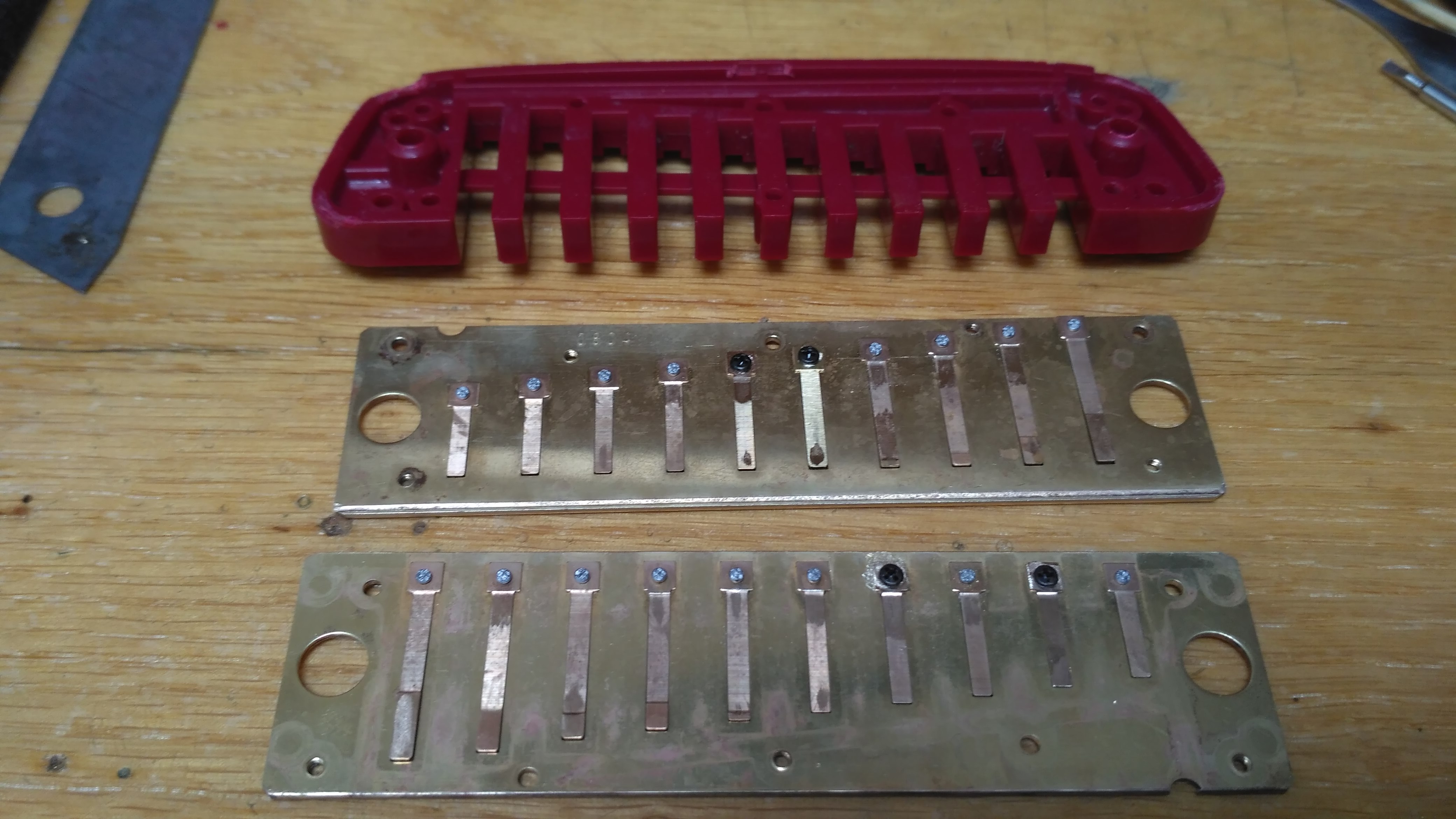 Четвертий на вдох начал низить на пол тона. Разобрал, язичок вроди цел. Подпилил край язичка по тюнеру, стало все в норму. Но поиграв пол дня, опять понизился. Я так думаю, что язичку пришел конец. Если кто может помочь, отзовитесь.